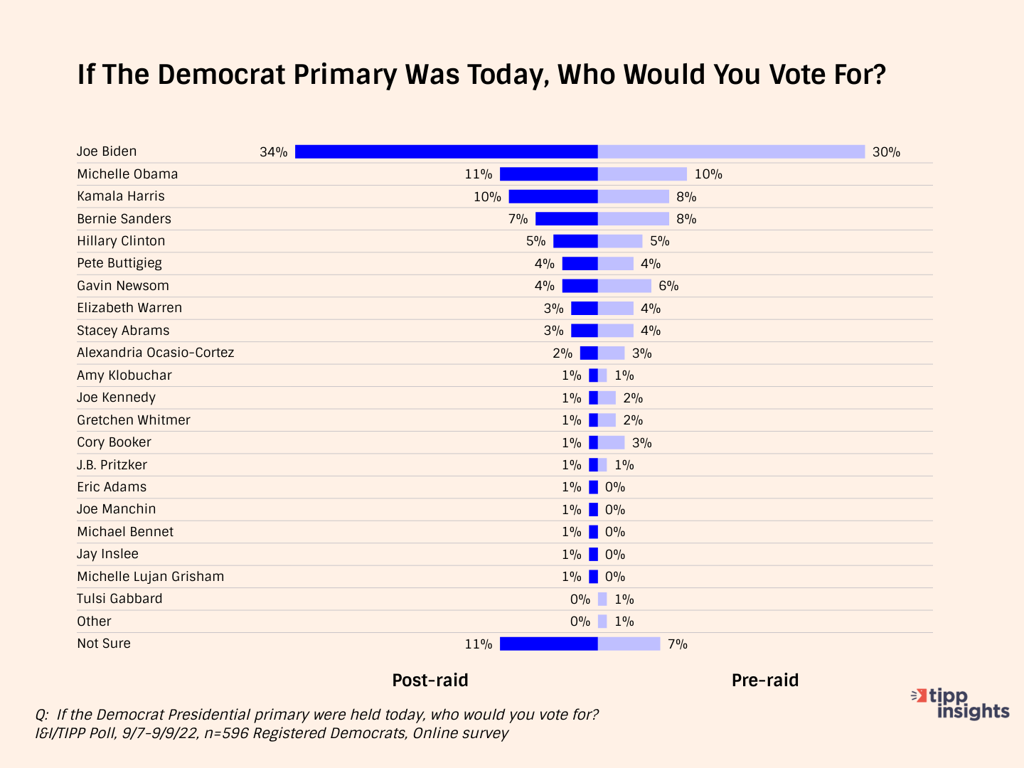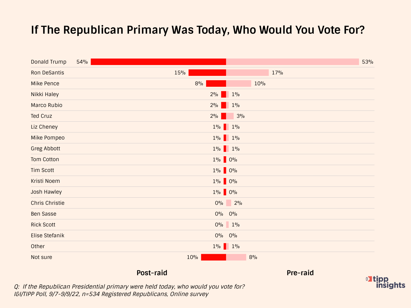 Did the Aug. 8 raid on former President Donald Trump's Florida home damage his electoral chances for 2024 and those of the Republican Party in the upcoming midterm elections? Data from two recent I&I/TIPP Polls suggest the answer is no.