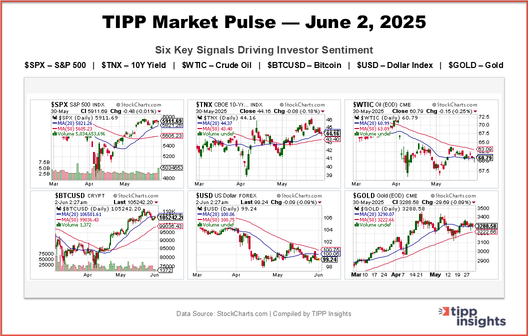 Bigger Charts: $SPX | $TNX | $WTIC | $BTCUSD | $USD | $GOLD