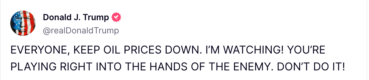 The remarks come despite the White House playing down market concerns. National Economic Council Director Kevin Hassett told CNBC that the strikes “have not really disrupted global oil markets,” citing ample reserves.