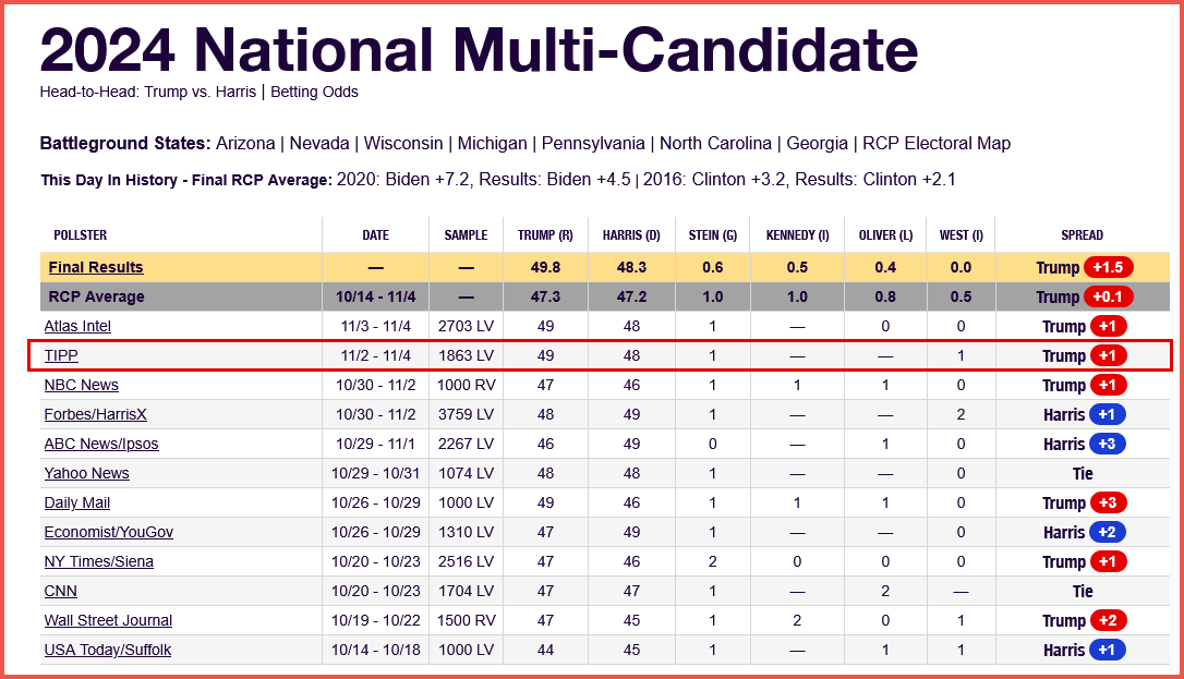 I&I/TIPP publishes timely, unique, and informative data each month on topics of public interest. TIPP’s reputation for polling excellence comes from being the most accurate pollster for the past six presidential elections.