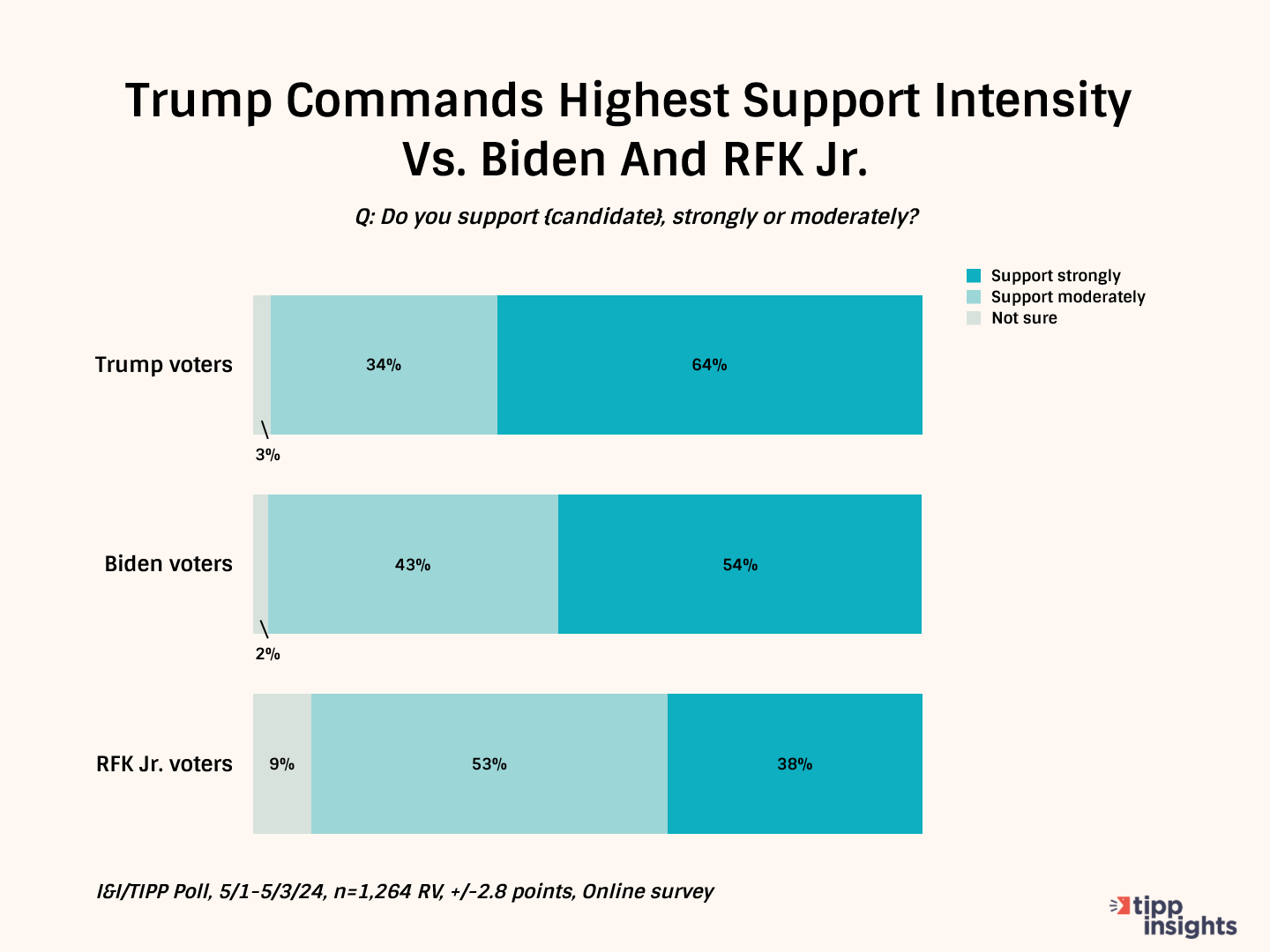 Recent data reflects the enthusiasm for Trump. For example, in a TIPP Poll completed early this month, Trump had a stronger intensity of support (64%) among his supporters than either of his two rivals (Biden, 54%, or RFK Jr., 38%), which can give him a solid edge in his last-minute "get-out-the-vote" efforts in the closing weeks of the campaign.