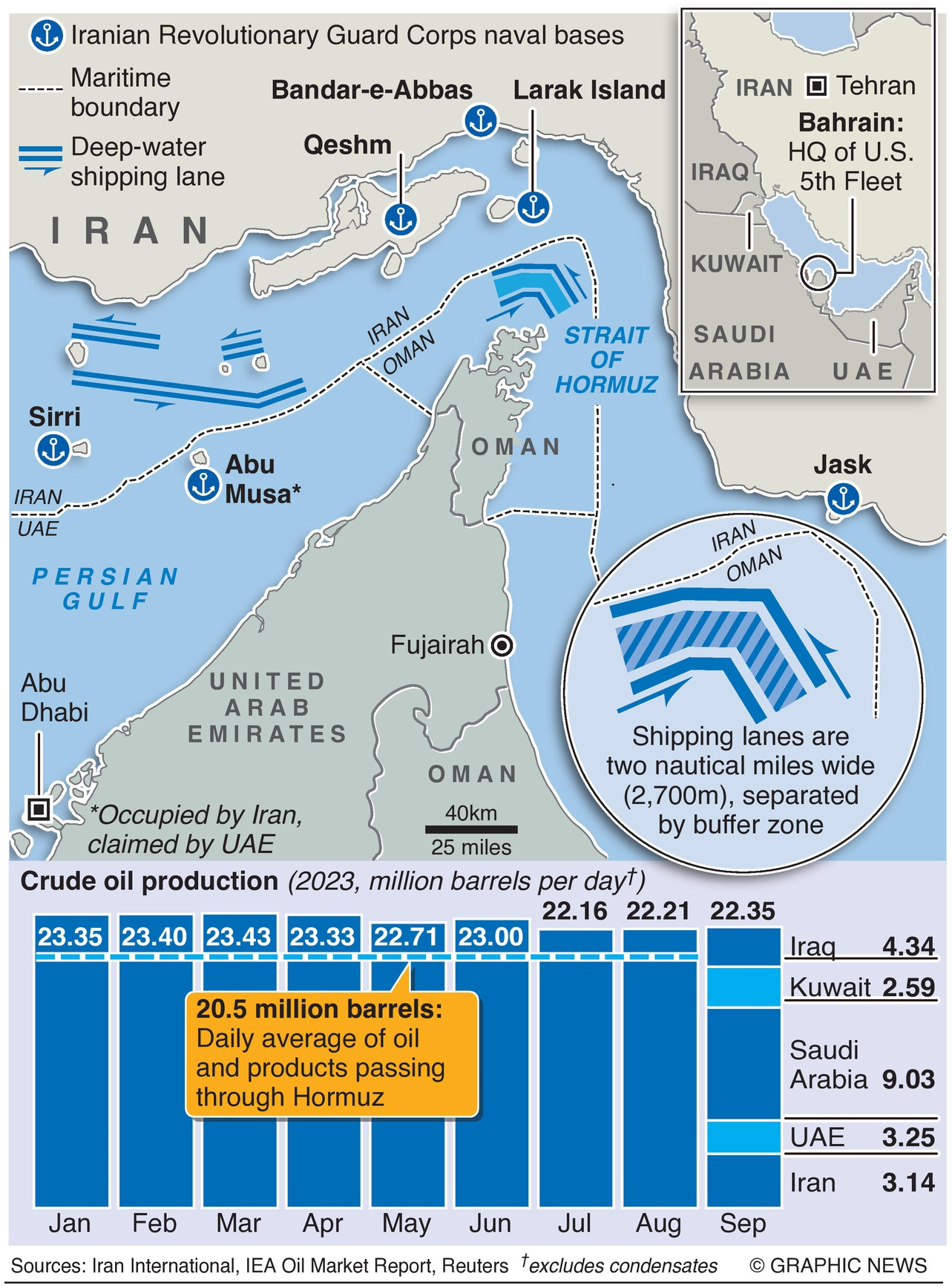 A more dangerous scenario would be Iran closing the Strait of Hormuz, the narrow waterway connecting the Persian Gulf to the Arabian Sea through which nearly 20% of global oil flows. If Iran were to obstruct tanker traffic through the Strait militarily, oil prices could soar past $100 per barrel overnight, plunging fragile economies into recession and shocking the global financial system. Such a move would provoke a worldwide crisis and almost certainly trigger a U.S.-led military response. The Pentagon has already deployed a carrier strike group to the Arabian Sea, signaling preparedness for exactly this contingency.
