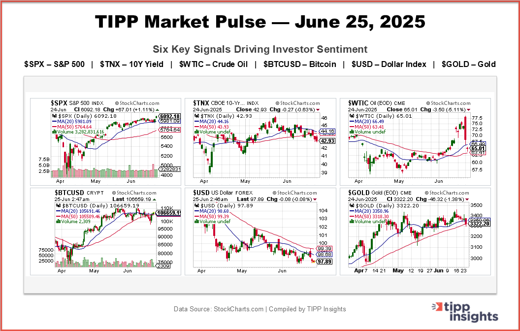 As we go to press, an unlikely truce has held between Israel and Iran, even if this meant that Iran had to unleash a harmless weapon against an American military base and President Trump had to unleash a torrent of harsh words against both countries for violating the terms of the ceasefire. Oil prices, the best barometer of stability during conflict and strife, are holding steady, hovering around $65, a level lower than where they were when Trump was inaugurated.