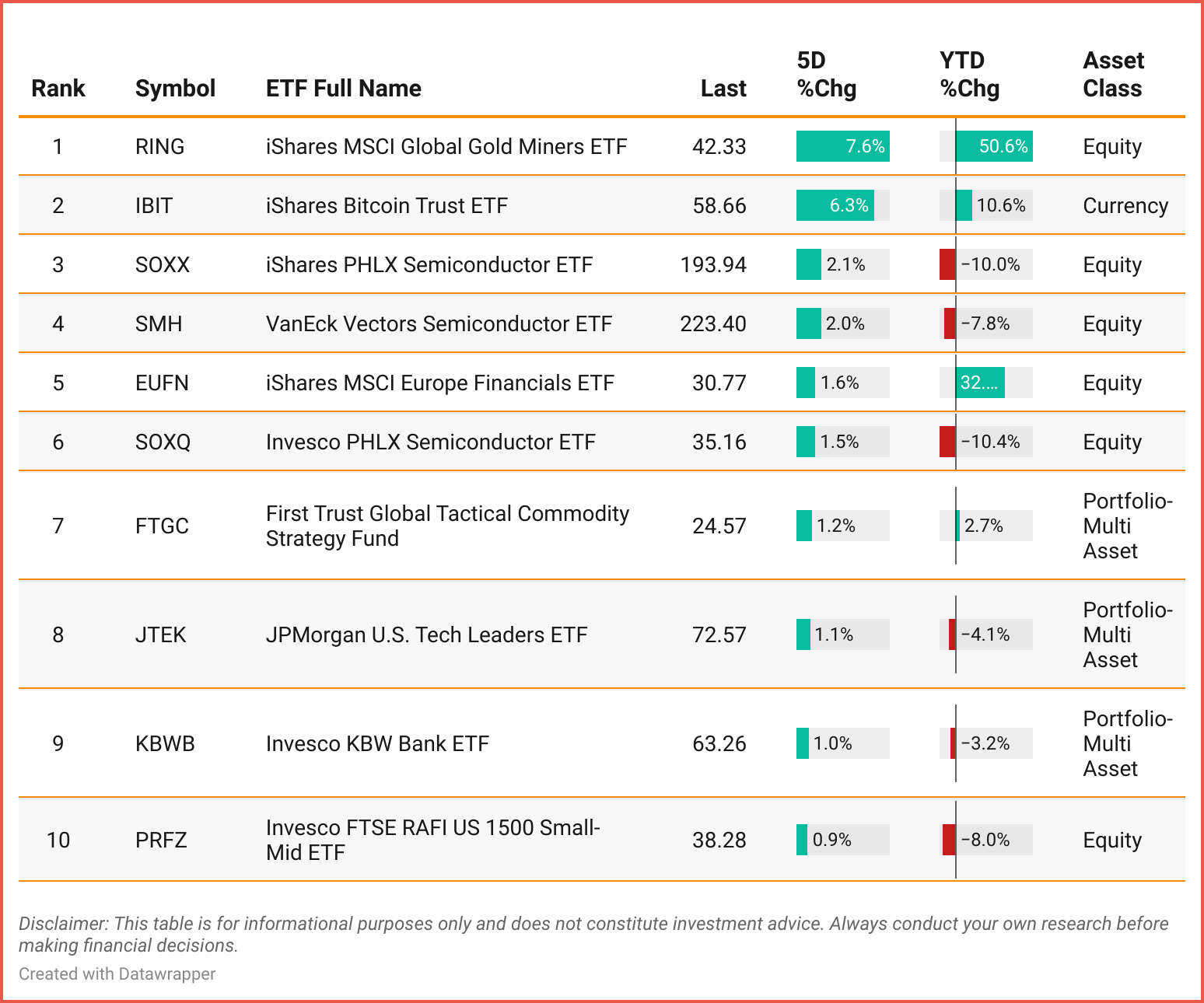 Tickers: RING | IBIT|SOXX | SMH | EUFN | SOXQ| FTGC |JTEK |KBWB | PRFZ