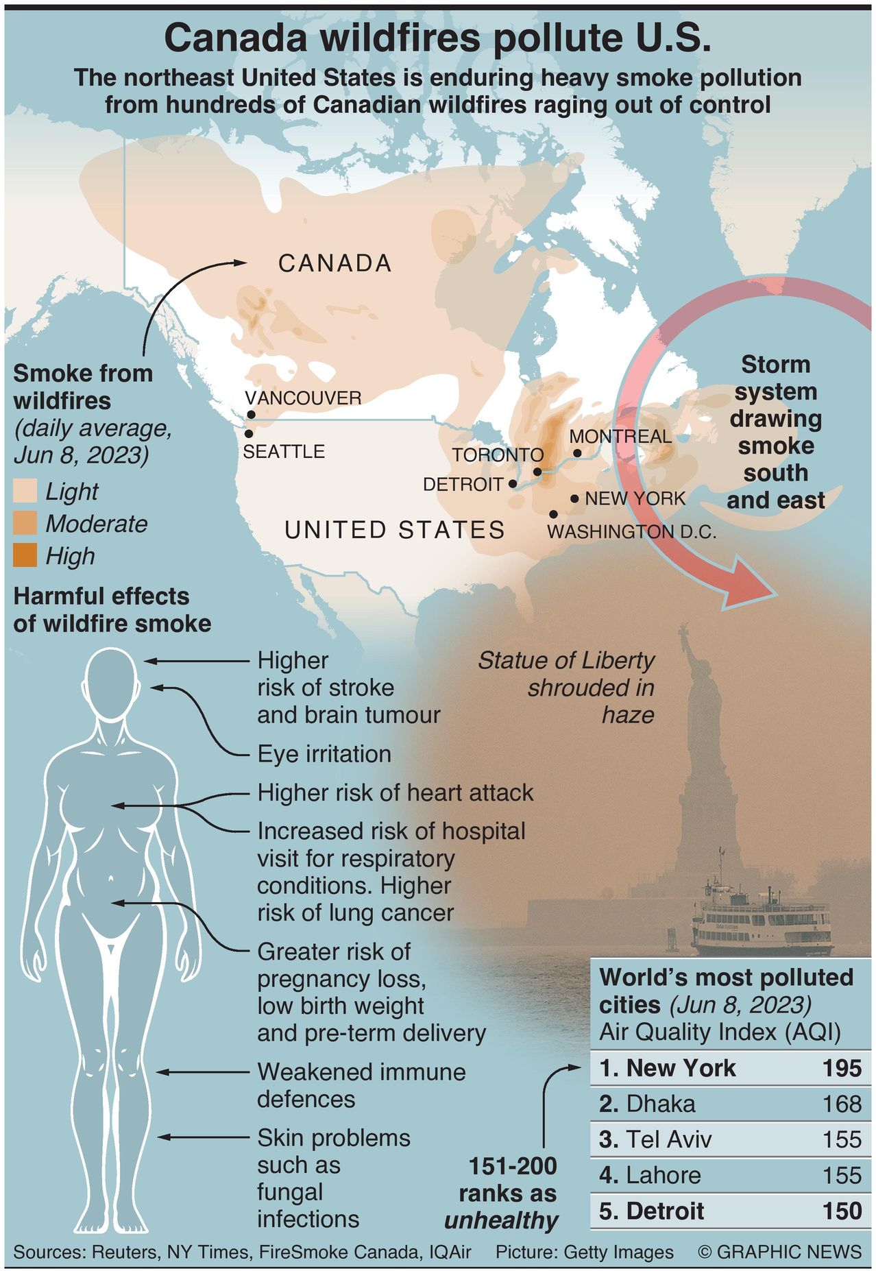 The northeast United States is enduring heavy smoke pollution from hundreds of Canadian wildfires raging out of control.