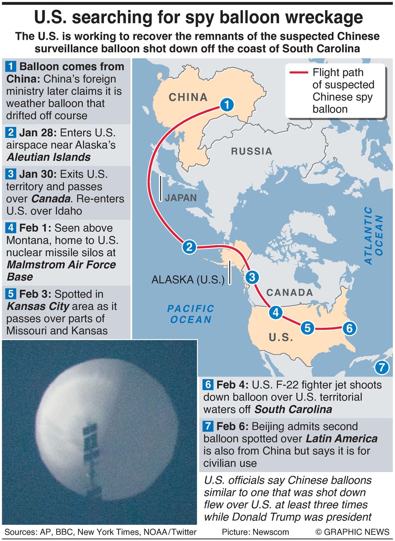 The U.S. believes the balloon was monitoring sensitive military sites.