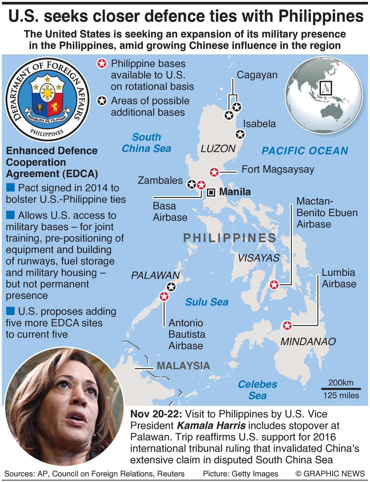 The United States is seeking to expand its military presence in the Philippines as U.S. Vice President Kamala Harris makes a three-day visit to the Southeast Asian country.