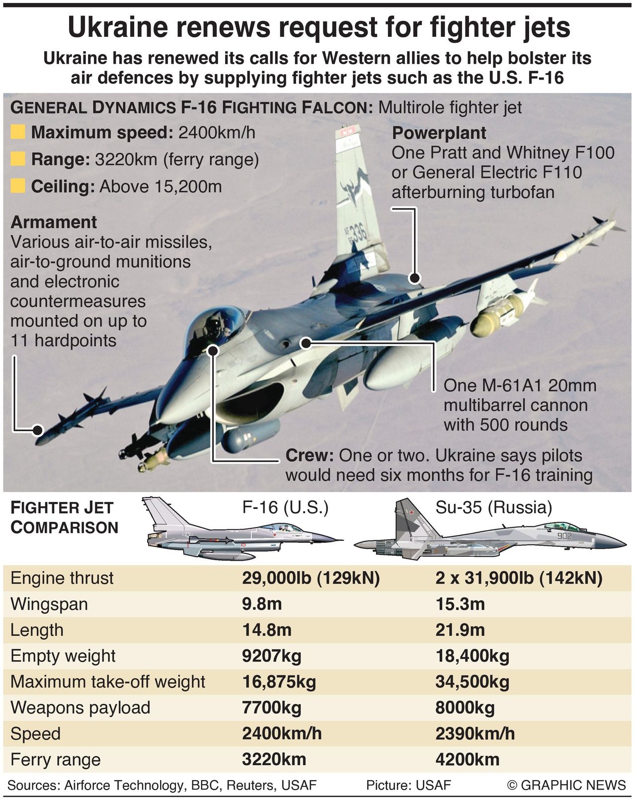 Ukraine’s deputy foreign minister, Andrii Melnyk, has called for the creation of a “fighter jet coalition” that would provide Ukraine with U.S. F-16s and F-35s, Eurofighters, Tornados, French Rafales and Swedish Gripen jets, the BBC said.