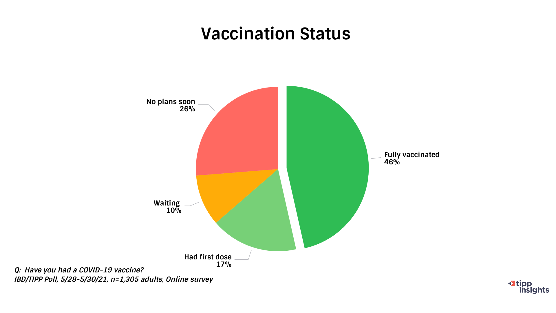 26% of Americans have no plans to vaccinate soon or at all in the most recent IBD/TIPP poll conducted in late May. The number is identical to our survey taken a month earlier.