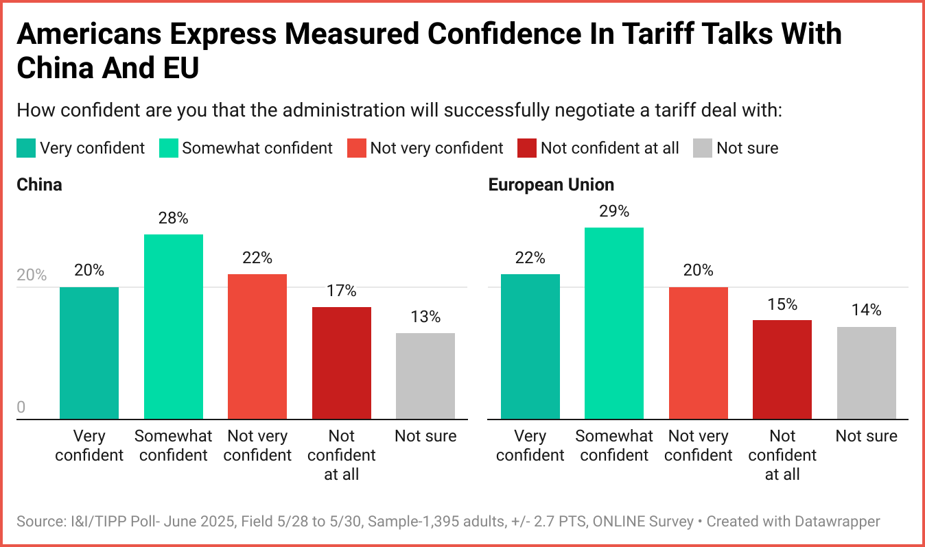 I&I/TIPP also asked voters how they view ongoing tariff-trade talks with China and the European Union.
