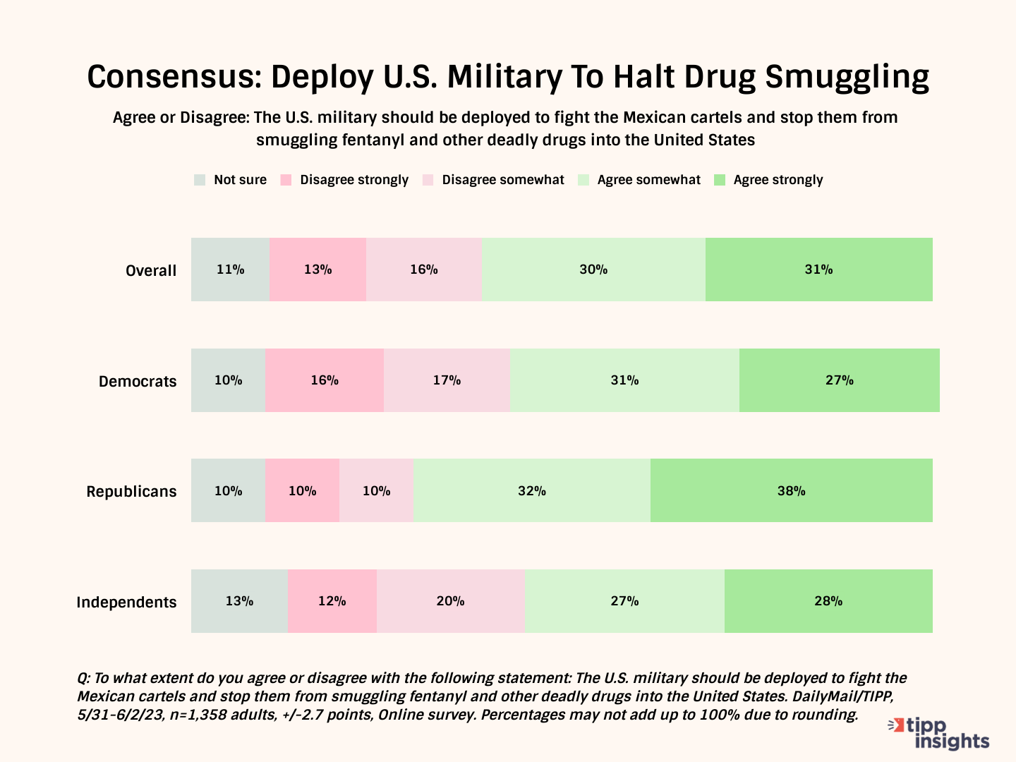 Voters by wide margins support deploying the military across the border to stop Mexican drug cartels producing deadly drugs and smuggling them into the US, a DailyMail.com/TIPP poll shows.