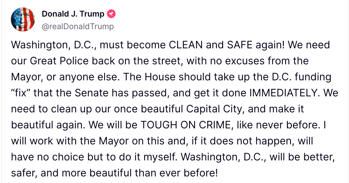 Trump’s proposal aligns with his earlier statements advocating federal control of D.C. due to concerns over crime and homelessness. The mayor’s office has yet to respond to the executive order.