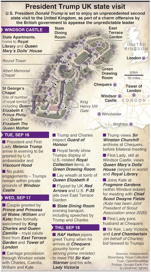 President Donald Trump is set to enjoy an unprecedented second state visit to the United Kingdom, as part of a charm offensive by the British government to appease the unpredictable leader.