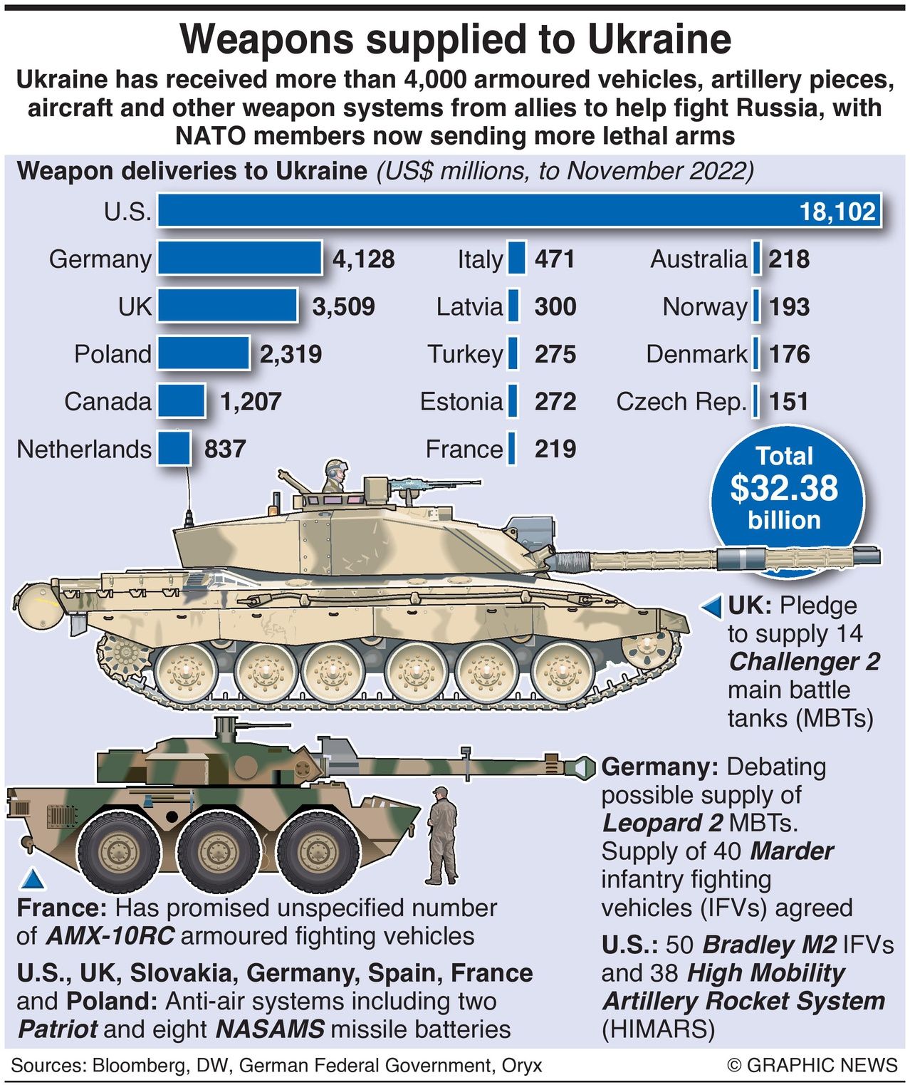 Ukraine has received more than 4,000 armored vehicles, artillery pieces, aircraft, and other weapon systems from allies to help fight Russia, with NATO members now sending more lethal arms.