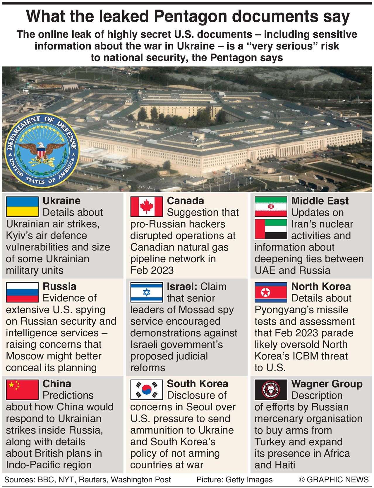 In addition to highly detailed information about the war in Ukraine, some of the leaked documents are said to cast light on sensitive briefing materials relating to U.S. allies.