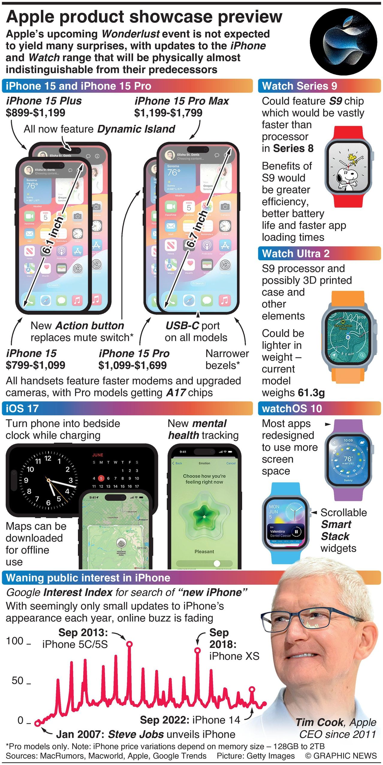 Apple’s upcoming Wonderlust event is not expected to yield many surprises, with updates to the iPhone and Watch range that will be physically almost indistinguishable from their predecessors.