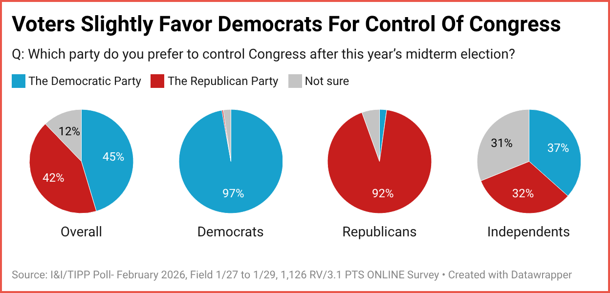 With only nine months to go for midterm congressional elections, I&I/TIPP asked another significant question of voters, namely: “Which party do you prefer to control Congress after this year’s midterm election?”