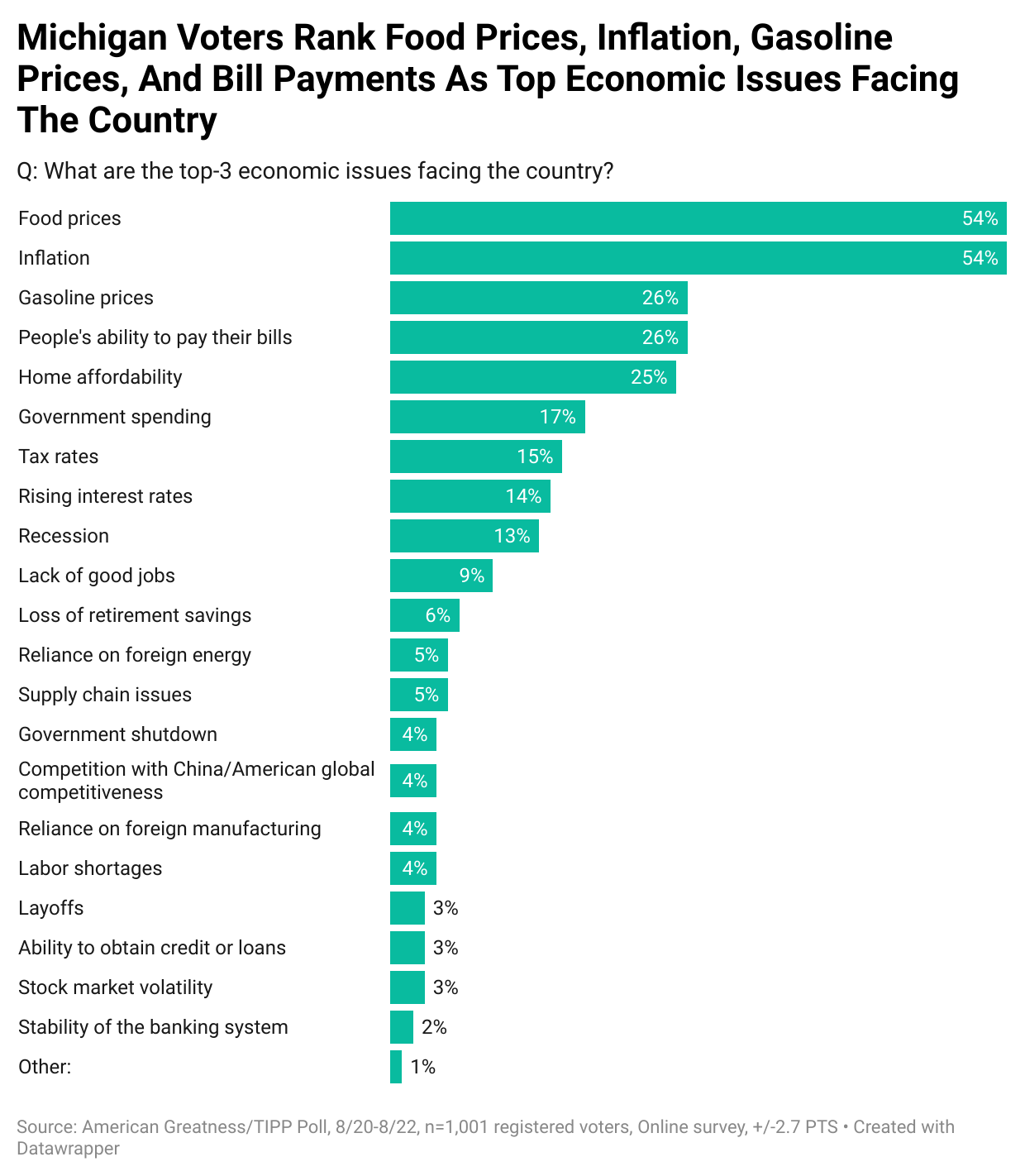 The poll asked participants, "What are the top three issues facing the country?"