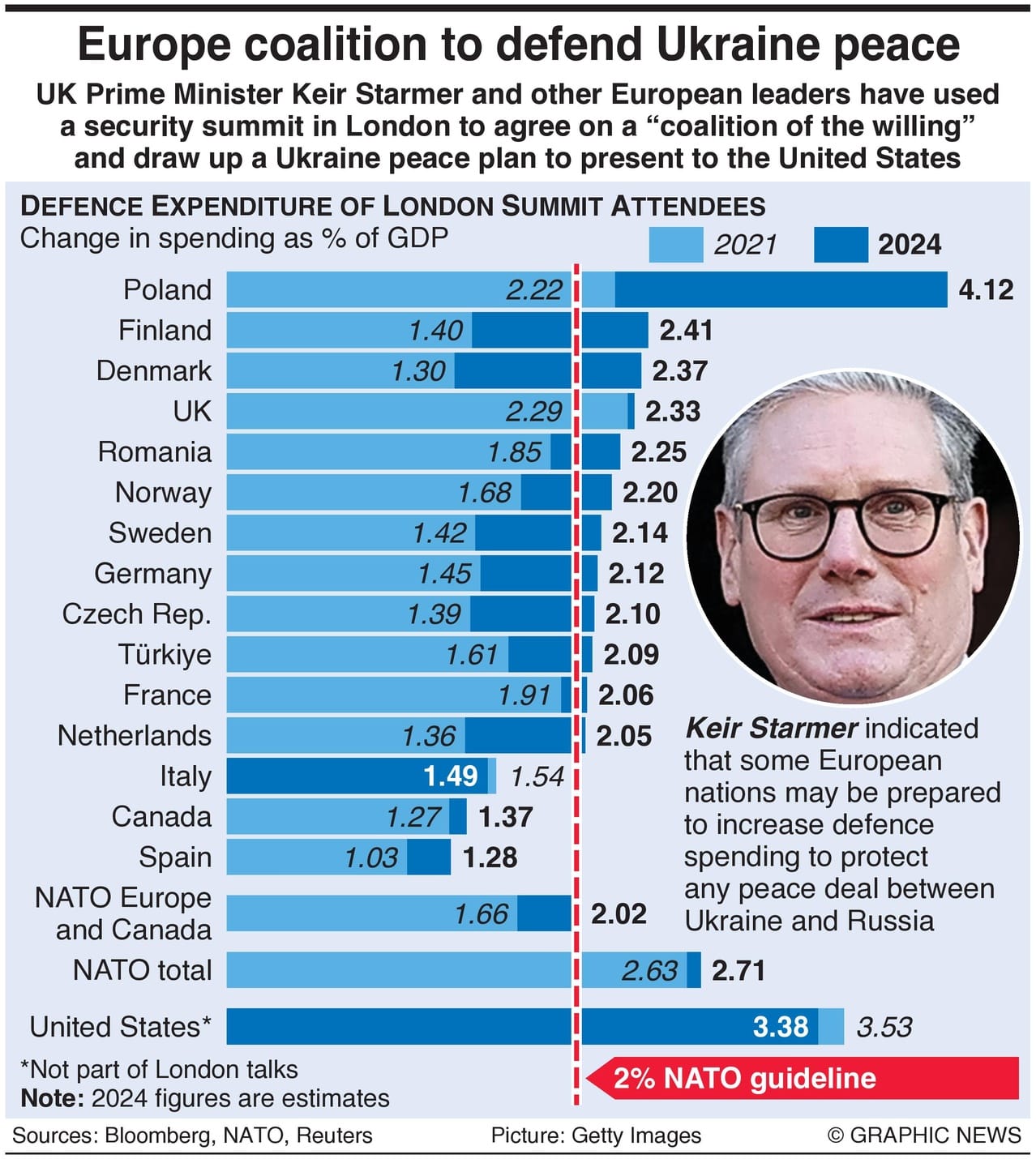 Europe’s leaders are talking a big game on Ukraine, but are they actually putting their money where their mouth is? Here’s a look at how much these countries are spending on defense. Some are stepping up, but is it enough? And more importantly—are their voters even on board?