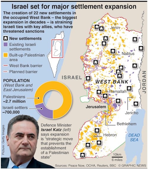 The creation of 22 new settlements in the occupied West Bank – the biggest expansion in decades – is straining Israeli ties with key allies, who have threatened sanctions.