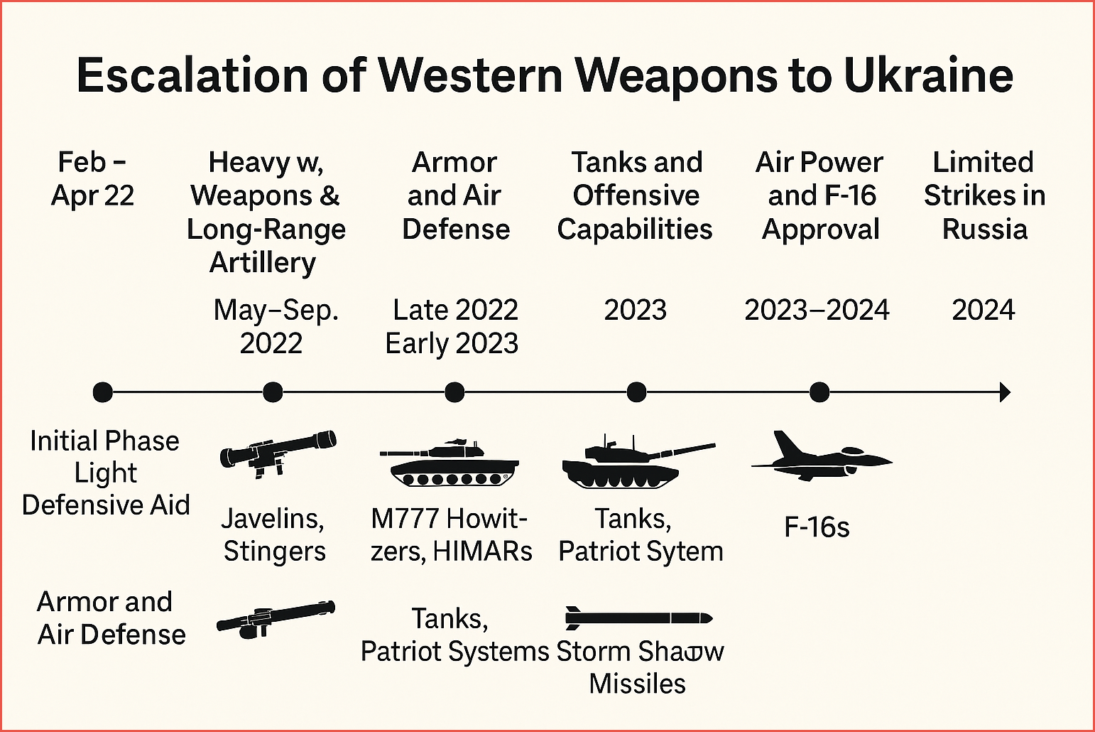 - Western countries began transfers of F-16s (arriving 2024–2025)