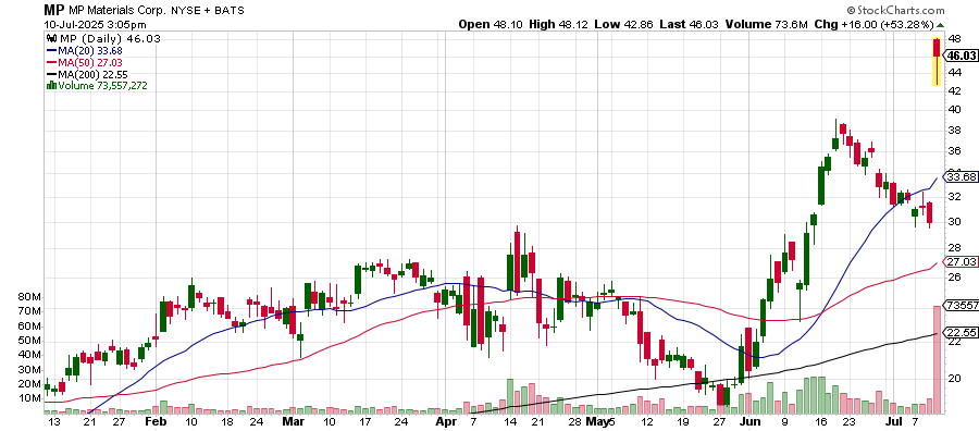 Editor's Note: MP Materials was the featured stock in our newsletter on June 27.
