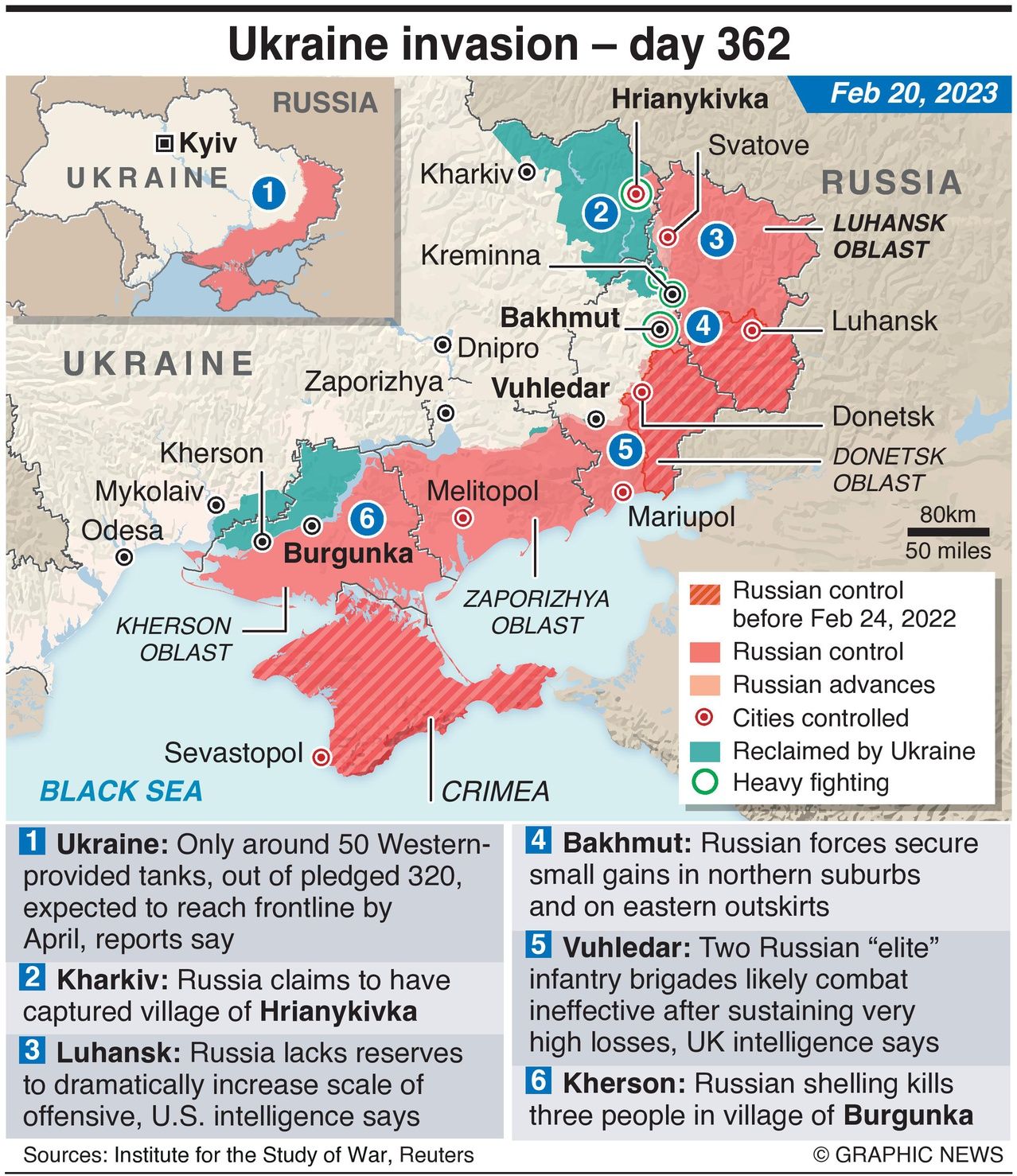 As the fighting on the ground carries on, U.S. President Joe Biden is expected to visit Poland to mark the first anniversary of Russia's invasion of Ukraine on Feb. 24. Polish Prime Minister Mateusz Morawiecki said he would discuss with Biden possibly increasing U.S. troop presence in Poland and making it more permanent.